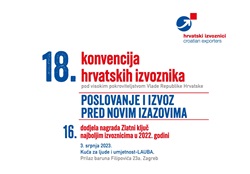 TEMA: Poslovanje i izvoz pred novim izazovima Datum: 3. srpnja 2023. od 10.00, Kuća za ljude i umjetnost-LAUBA, u Zagrebu Organizator: Hrvatski izvoznici Suorganizatori i partneri : HGK, HUP, HOK, FINA, HBOR, CRANE Medijski partner: Poslovni dnevnik Logistički partner: PRIMACOŠPED d.o.o. PROGRAM: 9.15 REGISTRACIJA 10.00 otvaranje 18. konvencije hrvatskih izvoznika uvodni pozdrav i govor: g. Davor Baković, predsjednik Hrvatskih izvoznika Dodjela nagrada „Zlatni ključ“ najboljim izvoznicima... pročitajte više